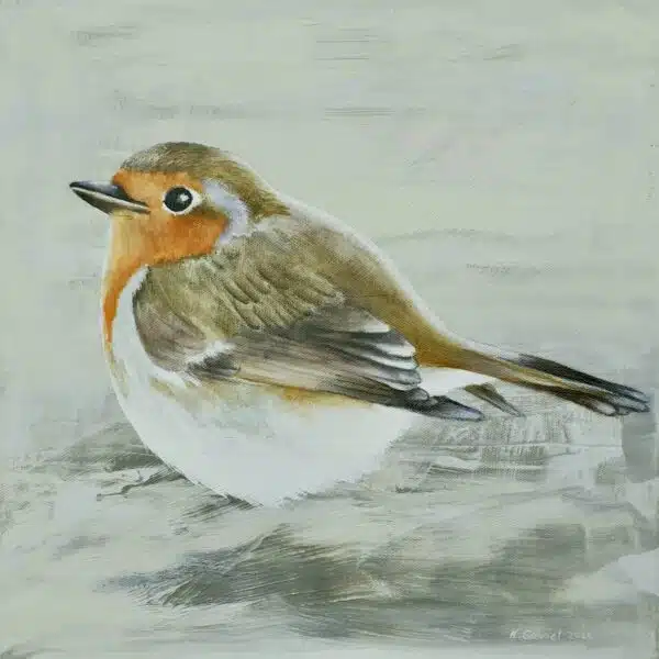 ROTKEHLCHEN – Mischtechnik auf Leinwand